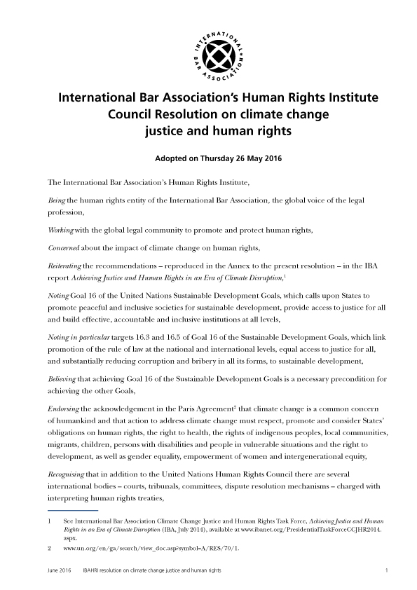 IBA Human Rights Institute council resolution on climate justice and human rights