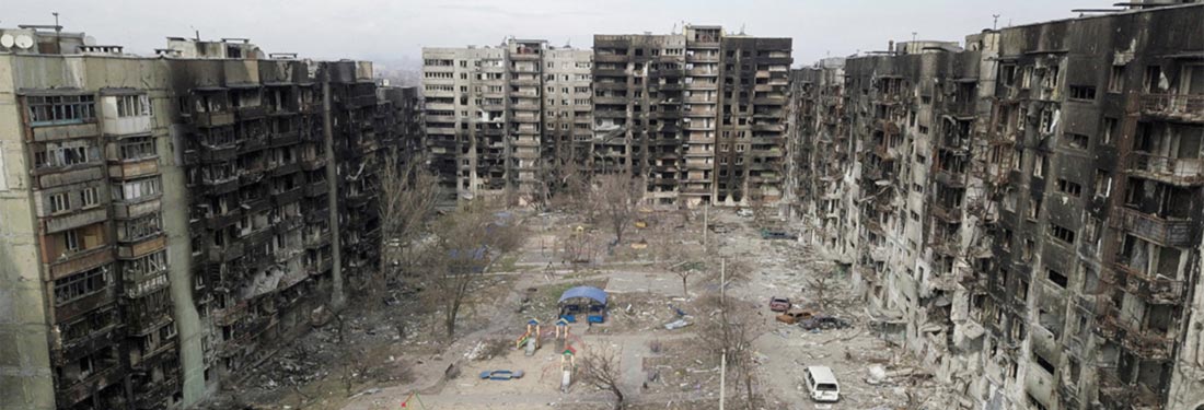 An aerial view shows residential buildings that were damaged during Ukraine-Russia conflict in the southern port city of Mariupol, Ukraine 3 April 2022. REUTERS/Pavel Klimov