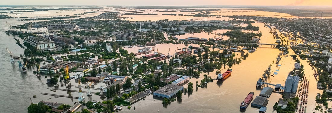 Image caption: Aerial footage of the city of Kherson following the dam explosion. Владимир Смирнов/AdobeStock.com