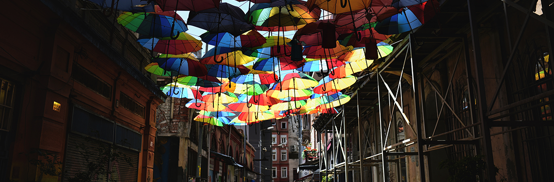 Image credit: Rainbow color umbrellas on old trade street in Istanbul. Oleksandr/AdobeStock.com