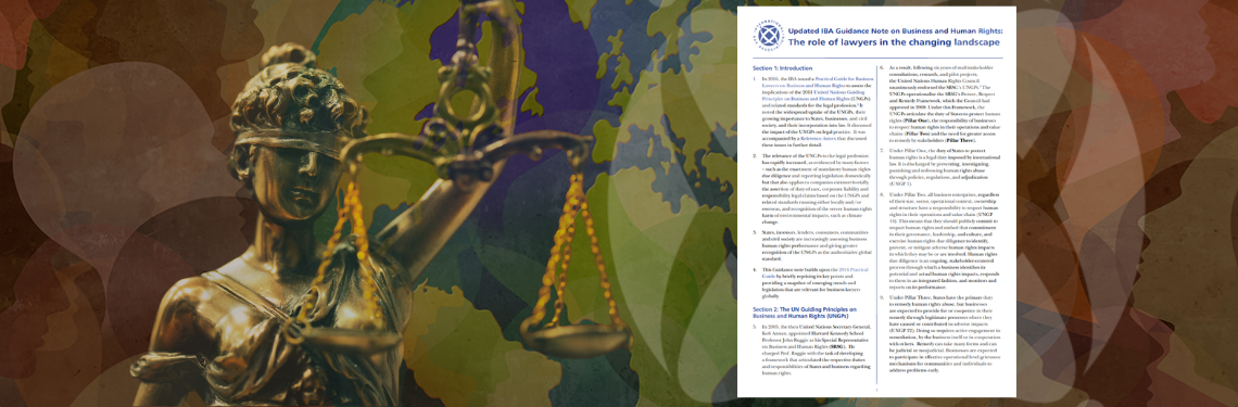 The International Bar Association (IBA) is marking the United Nations World Day of Social Justice by reminding lawyers of two of its published guidelines that recommend frameworks for the integration of human rights and environmental due diligence regulations: the Updated IBA Business and Human Rights Guidance for Bar Associations (Updated Bar Guidance); and the Updated IBA Guidance Note on Business and Human Rights: The role of lawyers in the changing landscape (Updated Lawyers Guidance).