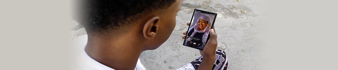Abdulahi Ahmed uses his mobile phone to watch a video on social media app TikTok in the Waberi district of Mogadishu, Somalia, 21 August 2023. REUTERS/Feisal Omar