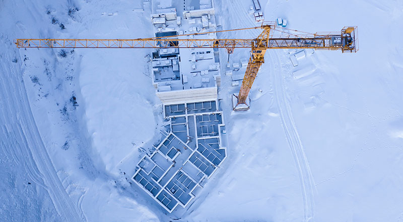Snowy, abandoned, empty construction site. Credit: maykal/Adobe Stock