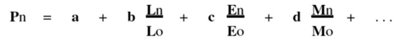 • cost indices for the current ‘now’ value (n) and the original value (o) for each of, for example, labour (L), equipment (E) and materials (M), which need to be updated frequently to stay current (preferably monthly rather than quarterly or annually, but that will depend upon the cost indices chosen).