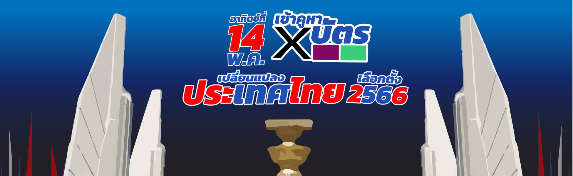 Image caption: Poster reads, 14 May election 2023, Enter the cross booth, Change Thailand.